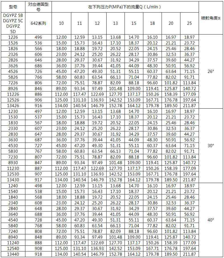 喷射角度α公差:+3° α≤30°, +5° α=40°