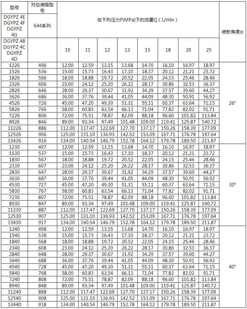 喷射角度α公差:+3° α≤30°, +5° α=40°