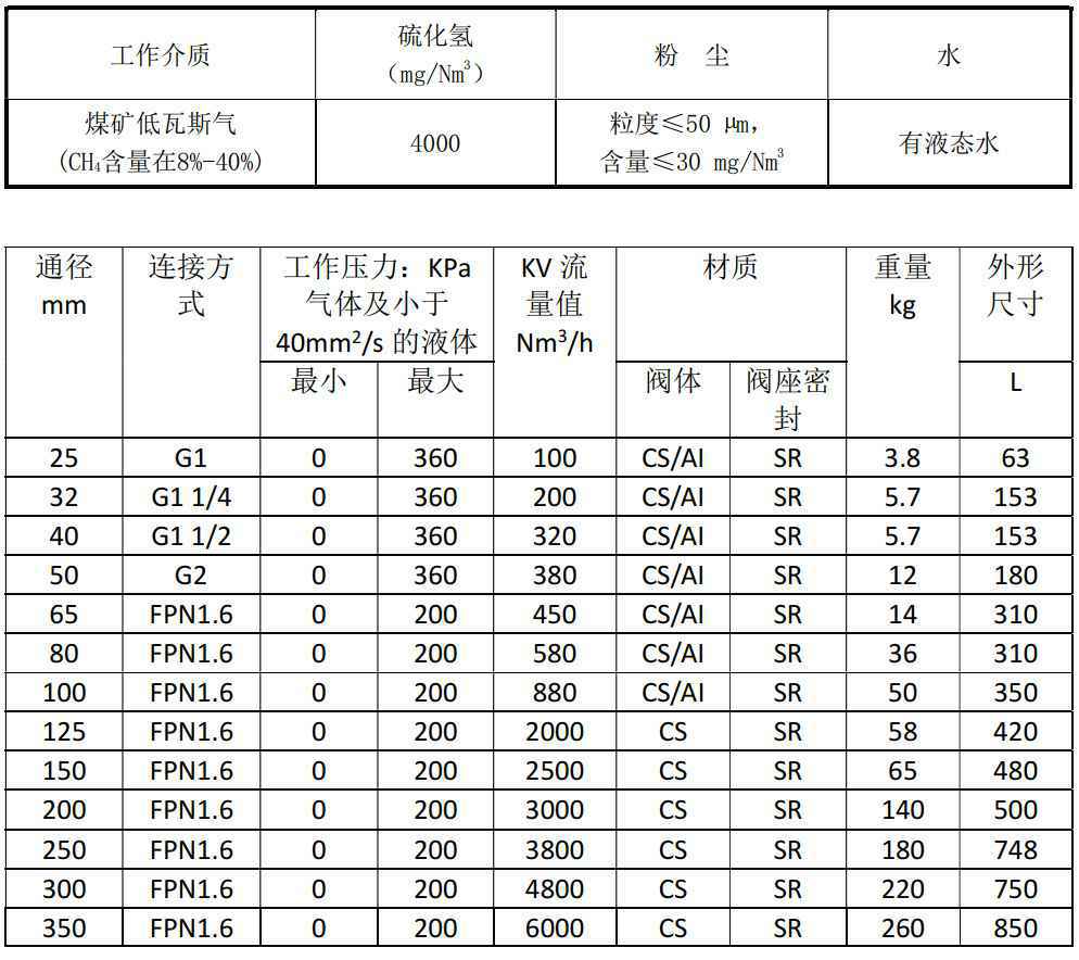 工作介质:煤矿低瓦斯气(气体中CH4含量在8%-40%),燃气中杂质含量见表1;